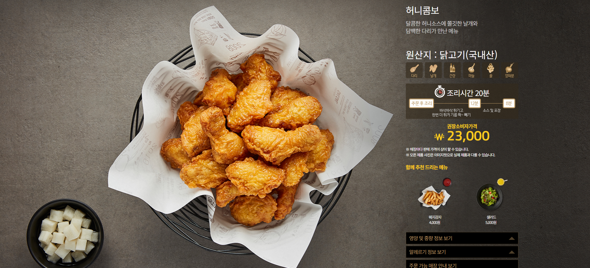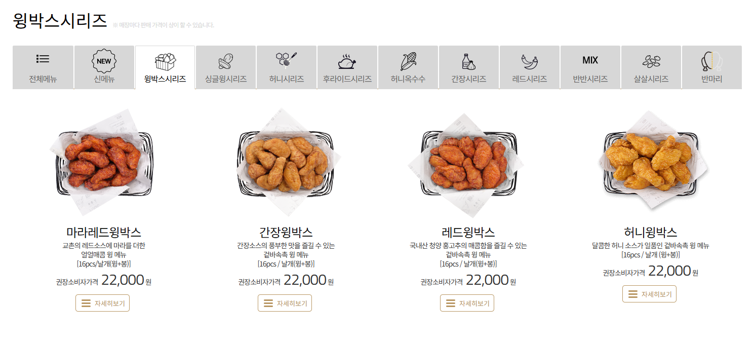 - 허니윙박스 → 허니콤보와 가장 비슷한 박스, 윙&봉으로만 구성